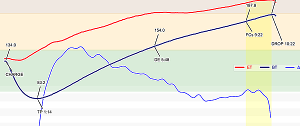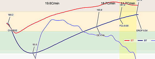 比楊家 進程快很多, 這次以圖表Artisen 來比對烘豆曲線